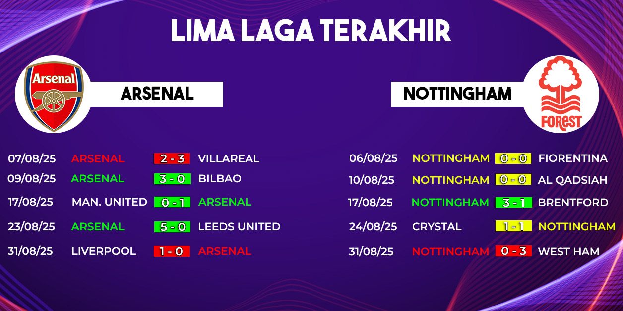 Pertandingan ini berpotensi menghadirkan duel taktik menarik. Jika Forest berani bermain menekan tinggi, Arsenal bisa sangat berbahaya lewat kecepatan Gabriel Martinelli dan Noni Madueke dalam melakukan serangan balik.