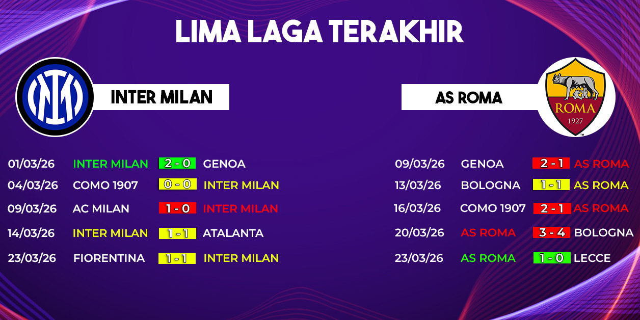 Lebih jauh lagi, Inter berhasil memenangkan lima dari enam pertemuan terakhir di Serie A melawan Roma. Statistik ini menjadi bukti nyata bahwa Nerazzurri memiliki keunggulan psikologis yang signifikan.
