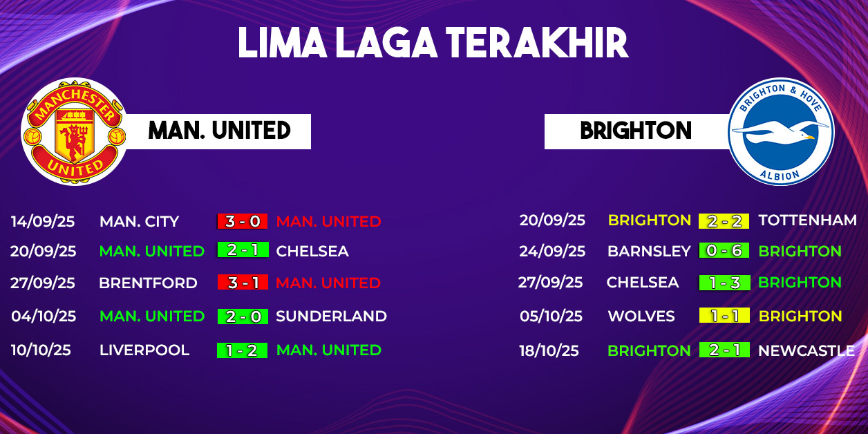 Sebaliknya, pada 17 pertemuan awal kedua tim, MU sangat dominan. Namun kini, Brighton tampil jauh lebih matang secara taktik dan mental.